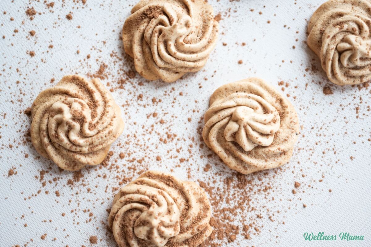 Unlike other cookies that have a base of flour, sugar, and butter, these rely on foamy egg whites instead. If you’ve ever had the fluffy dessert pavlova or lemon meringue pie, then you’ll recognize the texture. They have a little protein thanks to the eggs, plus they’re gluten-free and dairy-free. And instead of refined sugar, I use maple syrup which is rich in manganese, riboflavin, and antioxidants.