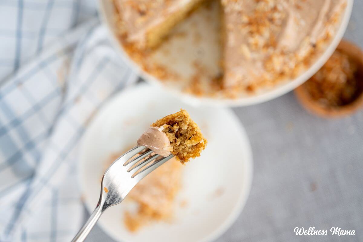 Coconut cake has become a springtime dessert staple for many families. Most of these recipes call for ingredients like powdered sugar, all-purpose flour, vegetable oil, and lots of refined sugar. Or they start off with a box mix. This recipe though uses a blend of coconut and almond flour instead of cake flour for a gluten and grain-free version. And instead of regular milk or heavy cream, we’re using coconut milk.